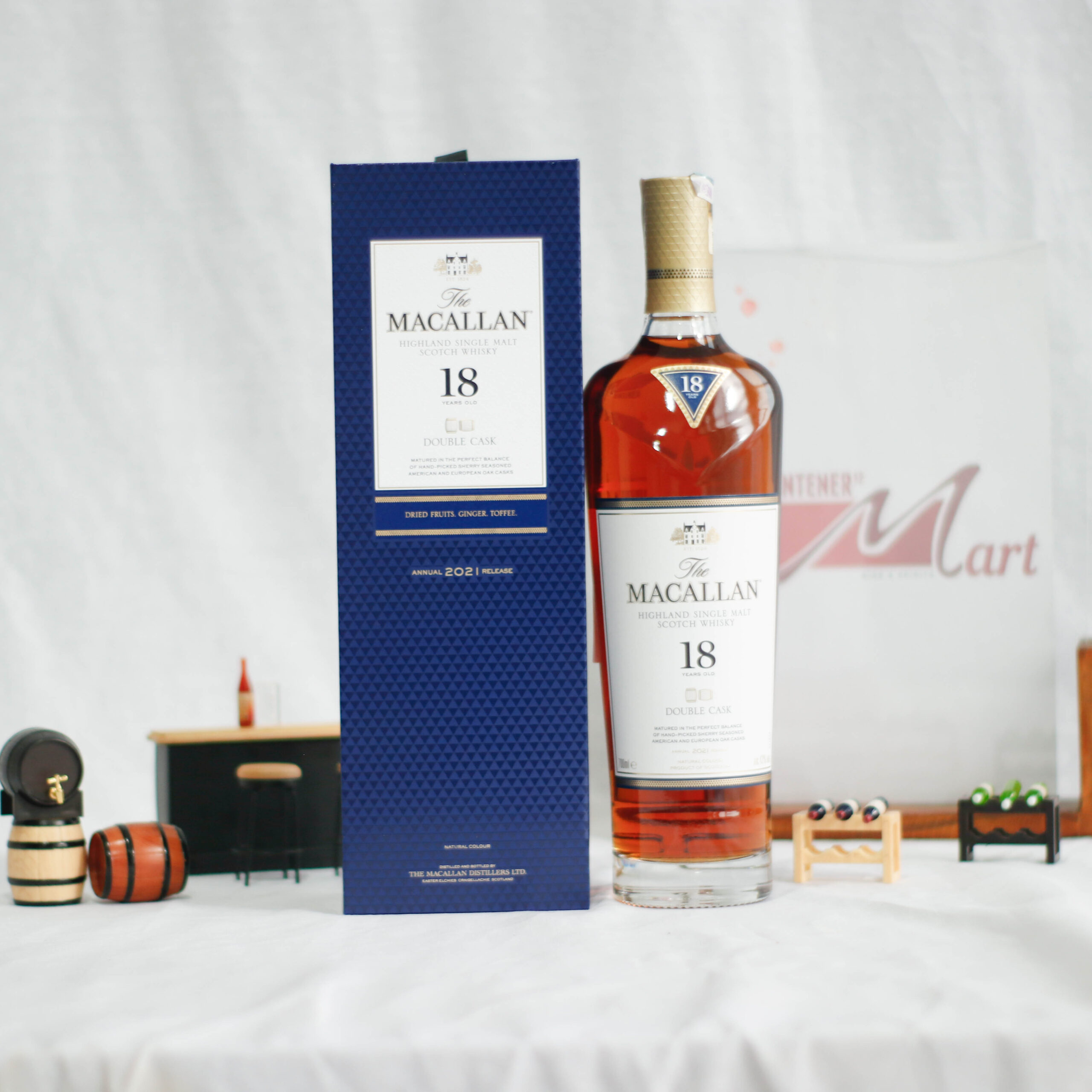 The Macallan 18 has distinctly dried fruit, ginger and toffee on the nose. Rich orange with hints of clove and nutmeg.